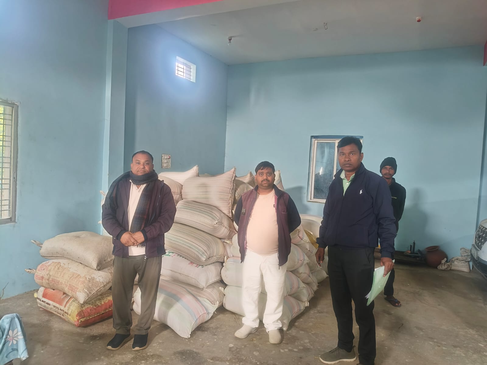 अवैध धान भंडारण को लेकर प्रशासनिक टीम की दबिश डेढ़ सौ बोरी धान जप्त