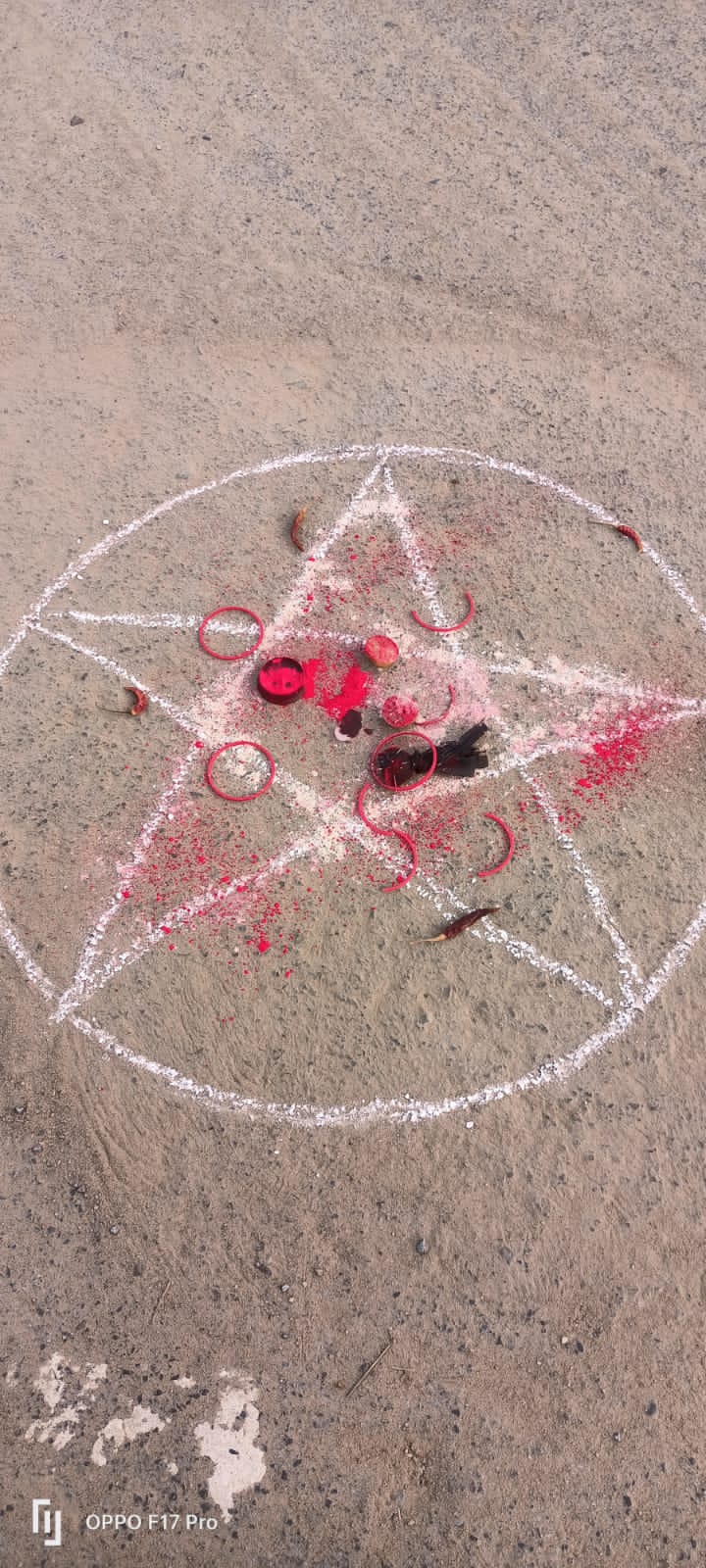 चौराहे तांत्रिक क्रिया चिन्ह और टूटा चूड़ी, मिर्च,काला कपड़ा नींबू मिलने भय का माहौल बना जन चर्चा का विषय