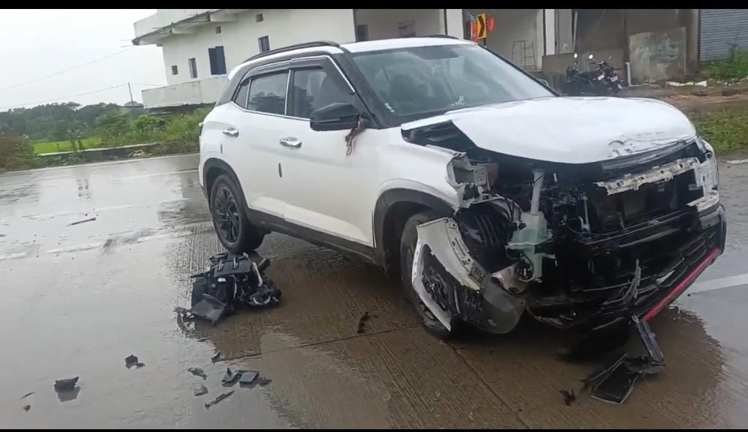 तेज रफ्तार पिकप वाहन ने हुंडई क्रेटा कार को मारी ठोकर