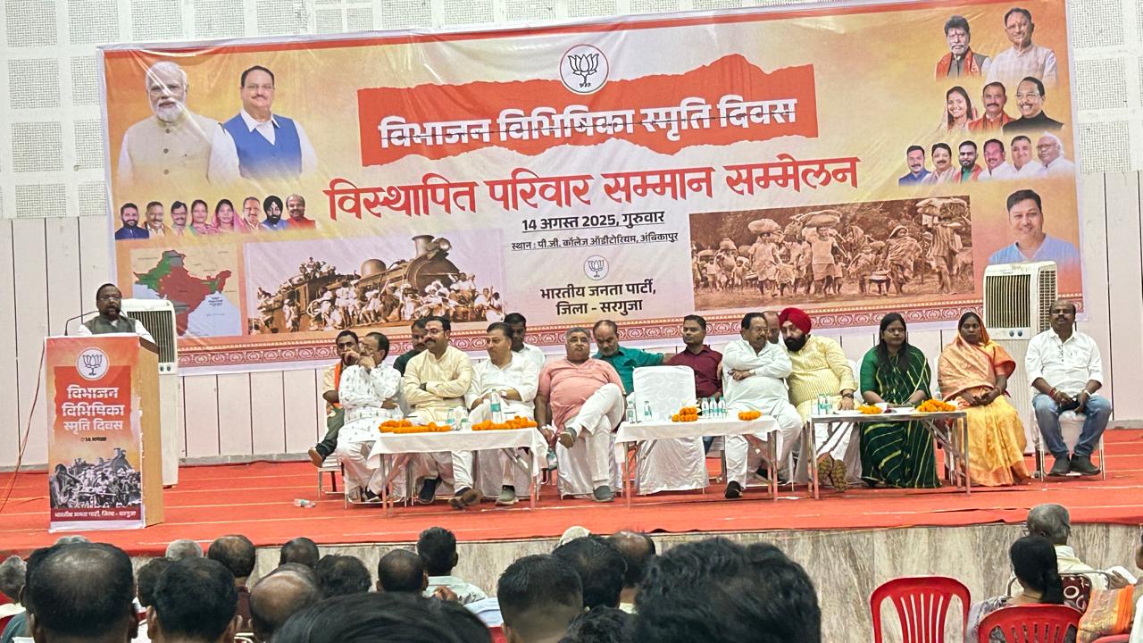 अंबिकापुर. भाजपा सरगुजा द्वारा आज पीजी कॉलेज के ऑडिटोरियम में विभाजन विभीषिका स्मृति दिवस अंतर्गत विस्थापित परिवार सम्मान सम्मेलन का आयोजन किया गया। कार्यक्रम के