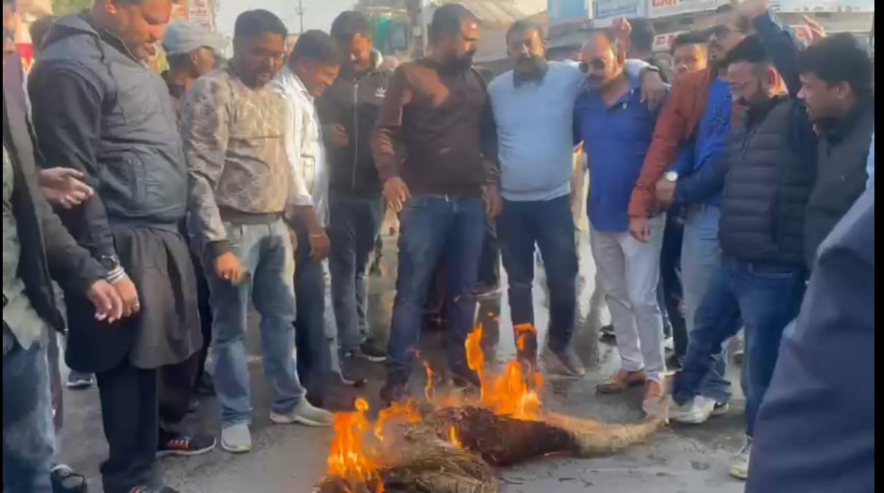 कांग्रेस कमेटी द्वारा जमीन रजिस्ट्री को लेकर मुख्यमंत्री का फूंका गया पुतला