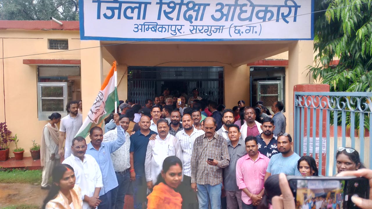 युक्तियुक्तकरण की नई नीति के विरोध में कांग्रेस नेताओं ने जिला शिक्षा अधिकारी कार्यालय का किया घेराव