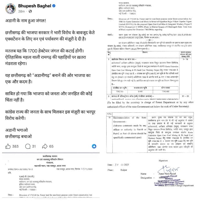 ब्रेकिंग : हसदेव अरण्य के केते एक्सटेंशन ओपनकोल माइन को मिली पर्यावरण मंजूरी, 1700 हेक्टेयर संरक्षित जंगल में कटेंगे लाखों पेड़