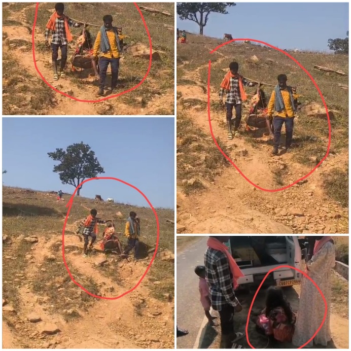 सड़क न होने से गर्भवती महिला को झेलेगी में ढोकर ले जाना पड़ा, रास्ते में ही हो गया प्रसव