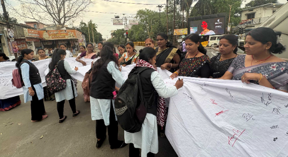 “दिल्ली निर्भया जैसी घटना अम्बिकापुर में! महिला कांग्रेस का साहसिक विरोध – साड़ी पर आमजन के हस्ताक्षर